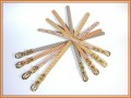 ベージュの本革(牛革)に様々なプリントが施してあります。